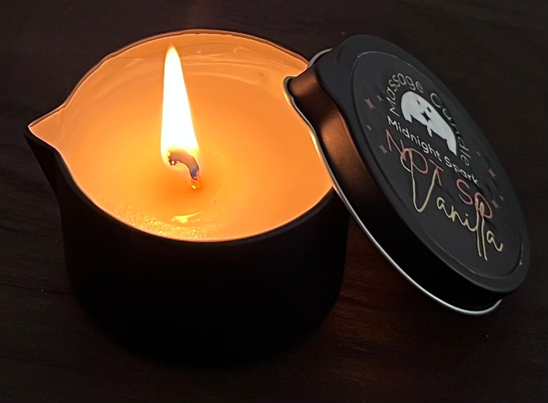 Indulge in sophisticated elegance with Midnight Spark’s Not So Vanilla Massage Candle – a sensual twist on a timeless classic. As the candle melts, it transforms into a warm, silky massage oil that nourishes the skin and sets the stage for deep relaxation and unforgettable intimacy.